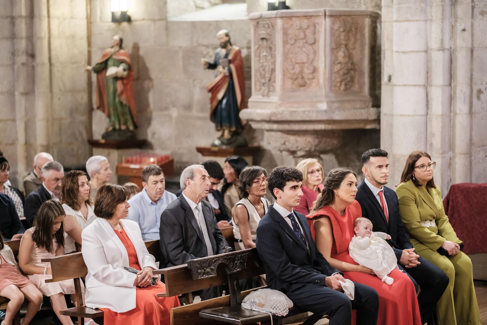 Documentamos la ceremonia con el máximo respeto y discreción, integrándonos en el ambiente para captar la solemnidad del bautismo. Nos centramos en la importancia del detalle y en las miradas de orgullo de padrinos y familiares, garantizando un reportaje artístico que respeta los tiempos y la importancia espiritual del acto.